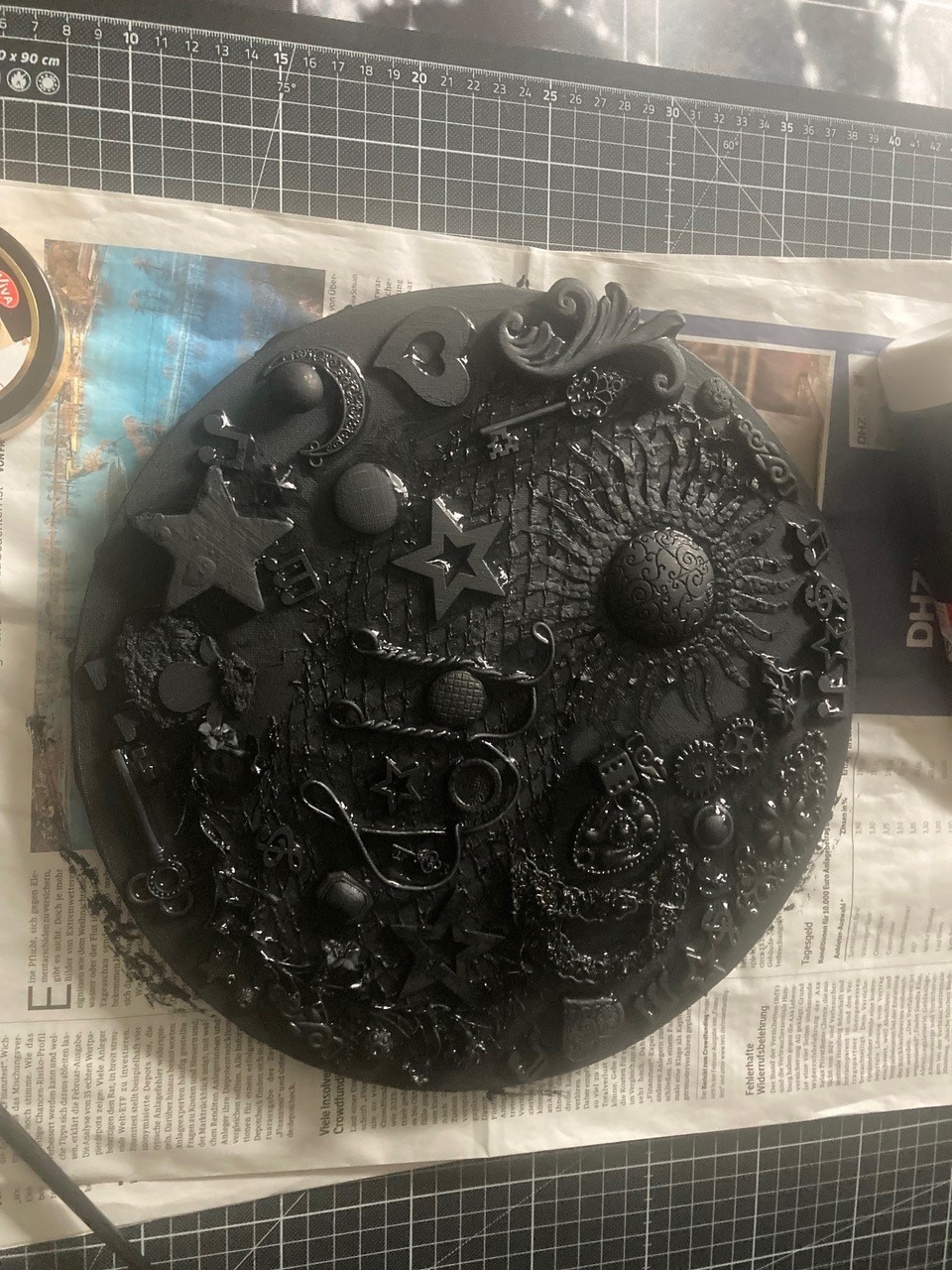 Der beklebte Hintergrund wird am Ende mit einer metallischen Farbe überzogen - das Ergebnis? Ein individueller Hingucker mit 3D-Effekt für dich oder als Geschenk. ☺️