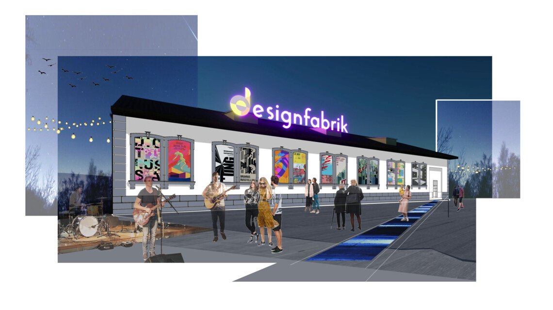 Die Visualisierung zeigt, wie die Designfabrik für eine Ausstellung inszeniert werden soll: