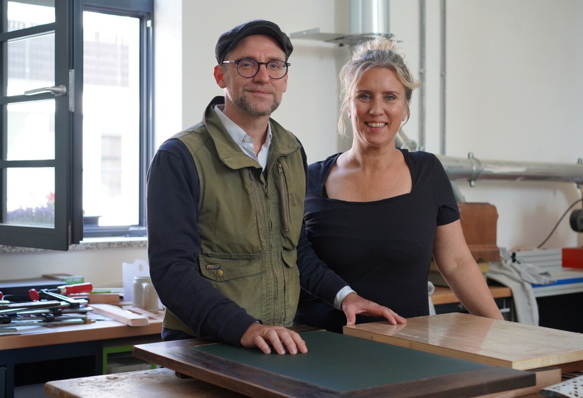 Die Erneuerung der Linoleum-Einlagen war nur eines von insgesamt vier Projekten, das Catharina und Stefan angegangen sind. Die beiden haben außerdem ihre Frühstücksbretter aus Walnussholz auseinandergenommen, abgeschliffen und wieder verleimt. Die Bretter waren ein Geschenk von einem befreundeten Drechsler und sind in die Jahre gekommen. „Wir haben spontan beschlossen, noch ein japanisches Schneidebrett herzustellen. Es bekommt zwei Querleisten und sieht dann aus wie ein kleiner Altar. Wir behandeln es mit Mohn- und Walnussöl“, sagt Catharina.