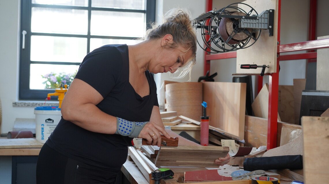 Catharina und Stefan hatten im September eine Woche Urlaub. Vier Tage davon haben sie in unserer Holzwerkstatt verbracht. „Wir erledigen das, was wir schon seit Jahren machen wollen – und zwar Restaurierungsarbeiten von antiken Möbeln mit original Werkstoffen und organischen Klebern“, sagt Stefan.
